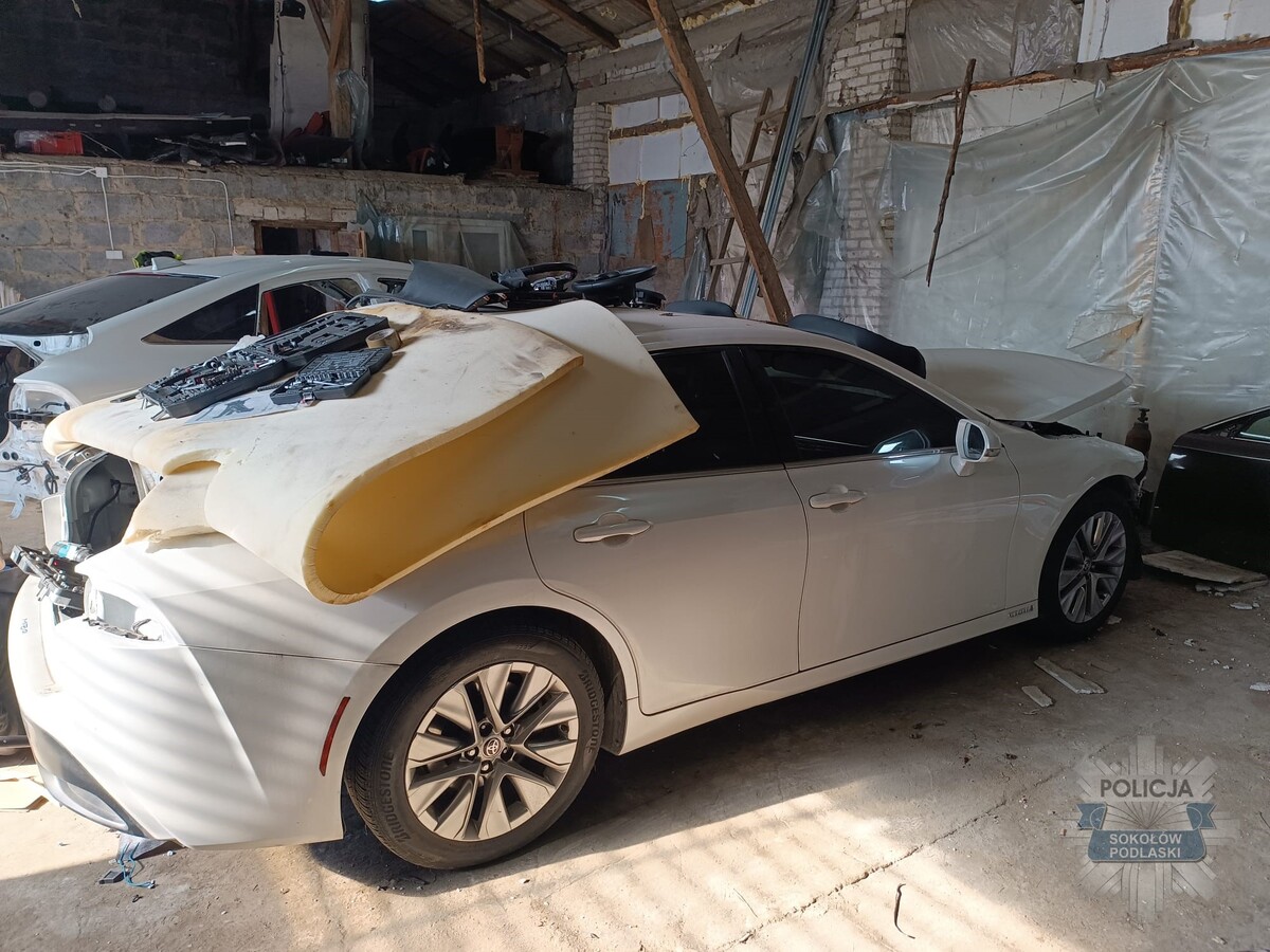 Policjanci z Zespołu Operacyjno-Rozpoznawczego Wydziału Kryminalnego w Sokołowie Podlaskim od dłuższego czasu pracowali nad sprawą nielegalnej rozbiórki samochodów. Finał działań nastąpił w ubiegłą środę (4 marca), kiedy mundurowi wkroczyli na wytypowaną posesję. Zaskoczenie przestępców było całkowite. Na miejscu policjanci zatrzymali dwóch mężczyzn w wieku 32 i 46 lat, którzy właśnie „patroszyli” dwa nowoczesne samochody marki Toyota. Jak wykazało sprawdzenie w policyjnych bazach, oba auta napędzane innowacyjną technologią wodorową zostały skradzione z terenu powiatu wołomińskiego.