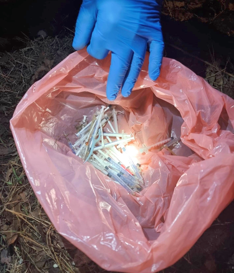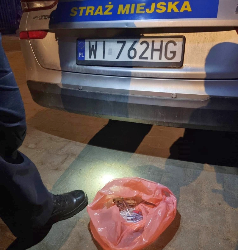 - Mieszkańcy byli skrajnie zdenerwowani. Boją się o swoje dzieci, które bawią się w tym miejscu w ciągu dnia, oraz o psy, które podczas spaceru mogłyby nadepnąć na igły lub połknąć zanieczyszczone materiały - relacjonują funkcjonariusze. Ze względu na ogromne ryzyko dla zdrowia publicznego, strażnicy nie czekali do rana na wyspecjalizowane ekipy sprzątające. Po wykonaniu dokumentacji procesowej i zabezpieczeniu terenu, mundurowi sami przystąpili do żmudnego i niebezpiecznego zadania.