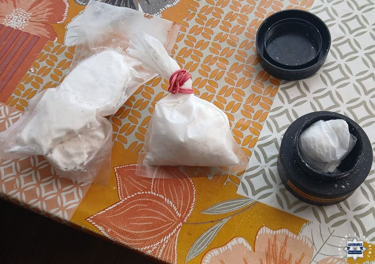 Jak informuje Komenda Powiatowa Policji w Busku-Zdroju, oprócz gospodarza w środku przebywała także 27-letnia kobieta oraz 40-letni mężczyzna. Już na miejscu mundurowi zauważyli ślady białego proszku rozsypanego na szkle. Wstępne badanie testerem potwierdziło, że była to amfetamina.