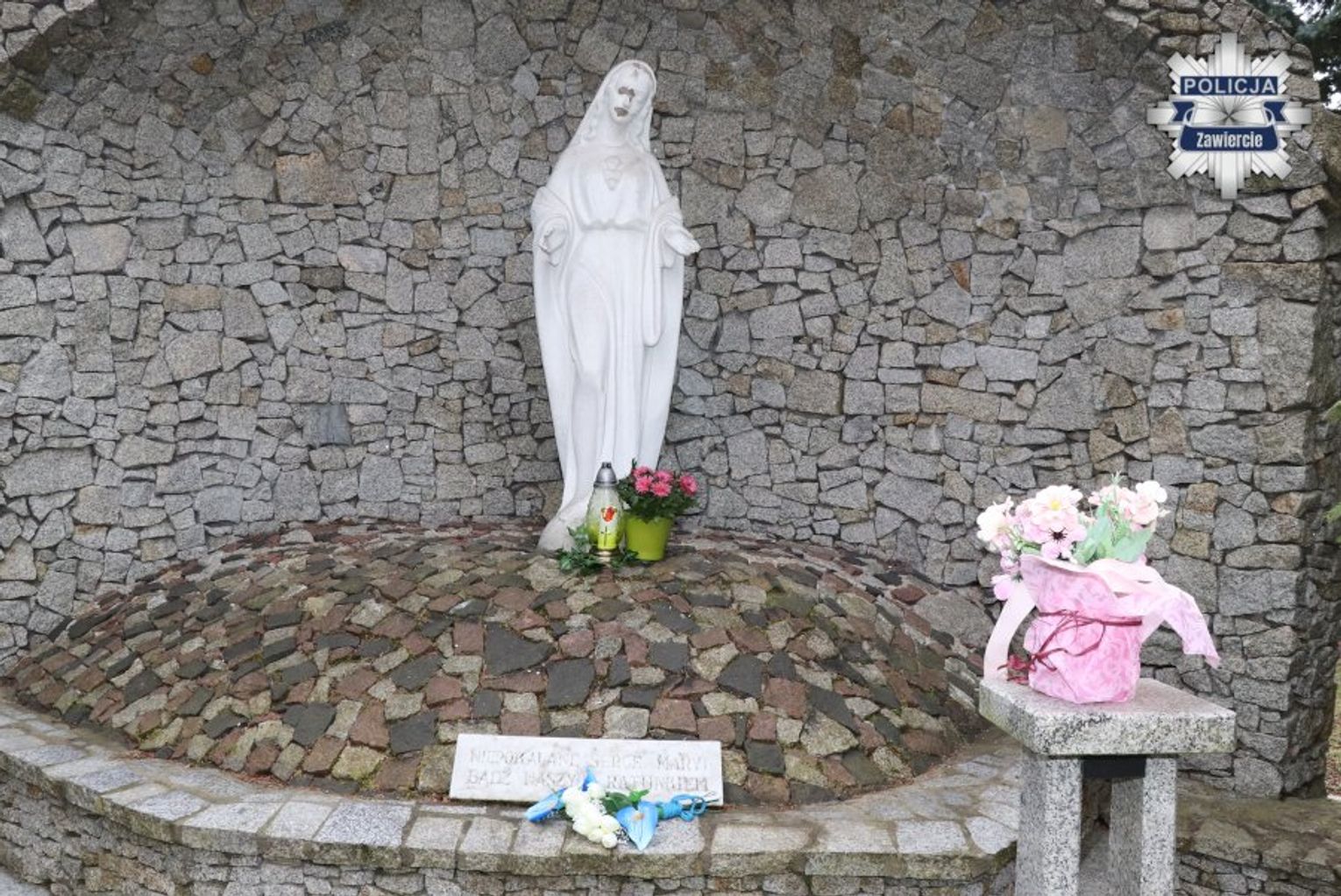 Policjanci natychmiast rozpoczęli poszukiwania sprawcy. W rejonie ulicy Wojska Polskiego zauważyli znanego im 27-latka, który na widok radiowozu zaczął się oddalać. Jak informuje Komenda Powiatowa Policji w Zawierciu, mężczyzna został zatrzymany i przyznał się do zniszczenia figur. Wskazał również miejsce, gdzie porzucił siekierę.