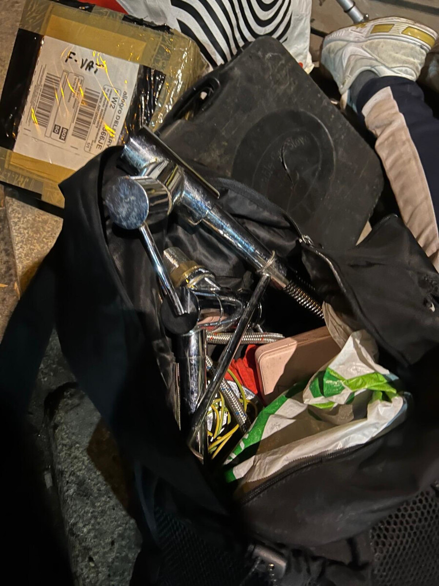 Znając doskonale modus operandi 36-latka, operacyjni zaplanowali zasadzkę. Nie pomylili się, mężczyzna po raz kolejny wyjechał „w rejon”, szukając okazji do wzbogacenia się. Zatrzymanie nastąpiło na tzw. dzikim parkingu przy ulicy Folwarcznej. Akcja była niezwykle dynamiczna. Zaskoczony włamywacz nie miał szans na ucieczkę. Gdy policjanci zajrzeli do jego plecaka, znaleźli tam dowody świeżych przestępstw: metalowe krany i kamerkę samochodową, telefon i paczkę kurierską, a także łom oraz rękawiczki, które służyły mu do pracy.