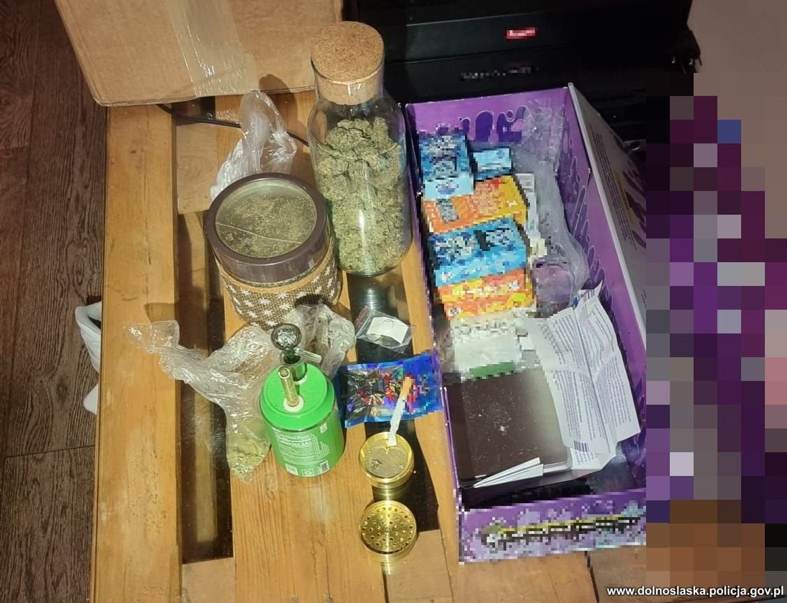 Kiedy funkcjonariusze stanęli pod drzwiami wytypowanego mieszkania, silny zapach marihuany był wyczuwalny już na korytarzu. Policjanci wykazali się dużą cierpliwością i profesjonalizmem i zamiast siłowego wejścia, wyczekali na moment, w którym jeden z lokatorów sam otworzył drzwi. Dzięki efektowi zaskoczenia osoby przebywające wewnątrz nie miały czasu na ukrycie czy zniszczenie dowodów. Widok, który zastali policjanci po wejściu do środka, nie pozostawiał złudzeń co do charakteru działalności prowadzonej w lokalu. Na stole leżały wagi jubilerskie, woreczki strunowe oraz pozostałości narkotyków. W mieszkaniu zatrzymano pięć osób w wieku od 19 do 29 lat - czterech mężczyzn i jedną kobietę.
