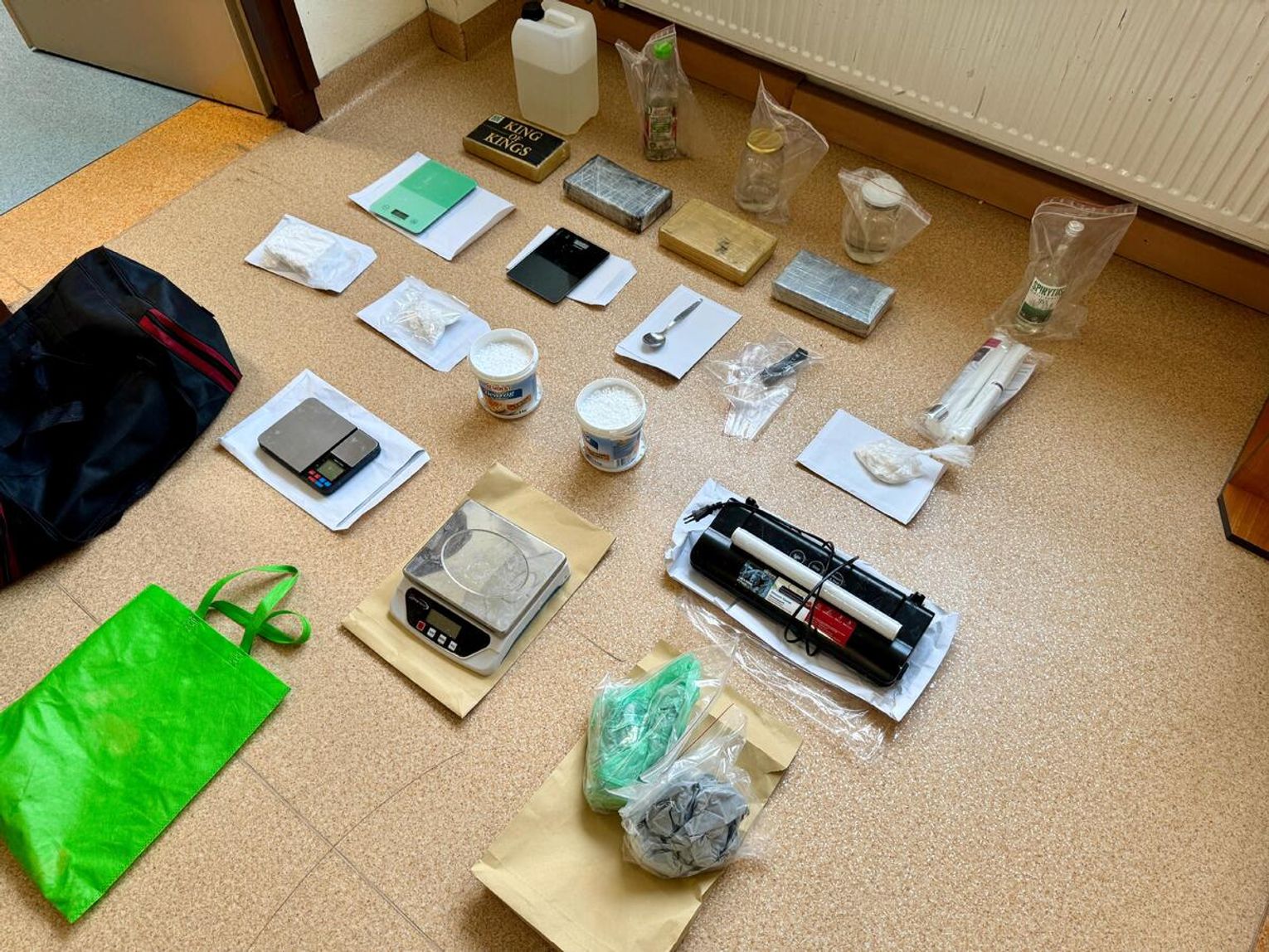 Mieszkanie, do którego wkroczyli policjanci, pełniło rolę profesjonalnego magazynu i laboratorium. Skala znaleziska poraża – funkcjonariusze przejęli łącznie prawie 150 kilogramów nielegalnych substancji, w tym 130 kg marihuany, 6 kg kokainy, 3000 tabletek ekstazy, 3 litry aminy oraz ponad 12 kg innych substancji psychotropowych. Oprócz gotowych narkotyków, w lokalu znajdowały się chemikalia i sprzęt do ich produkcji. Czarnorynkowa wartość zabezpieczonego towaru to około 10 milionów złotych. Co więcej, przestępcy dysponowali realną siłą ognia – policjanci zabezpieczyli 5 sztuk broni palnej wraz z zapasem amunicji.