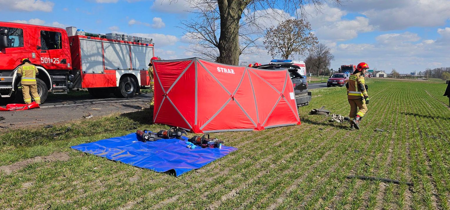W działaniach brały udział cztery zastępy straży pożarnej, policja oraz pogotowie. Droga wojewódzka została całkowicie zablokowana na czas pracy służb. Policja pod nadzorem prokuratora prowadzi czynności, które mają wyjaśnić, dlaczego samochód zjechał z jezdni.