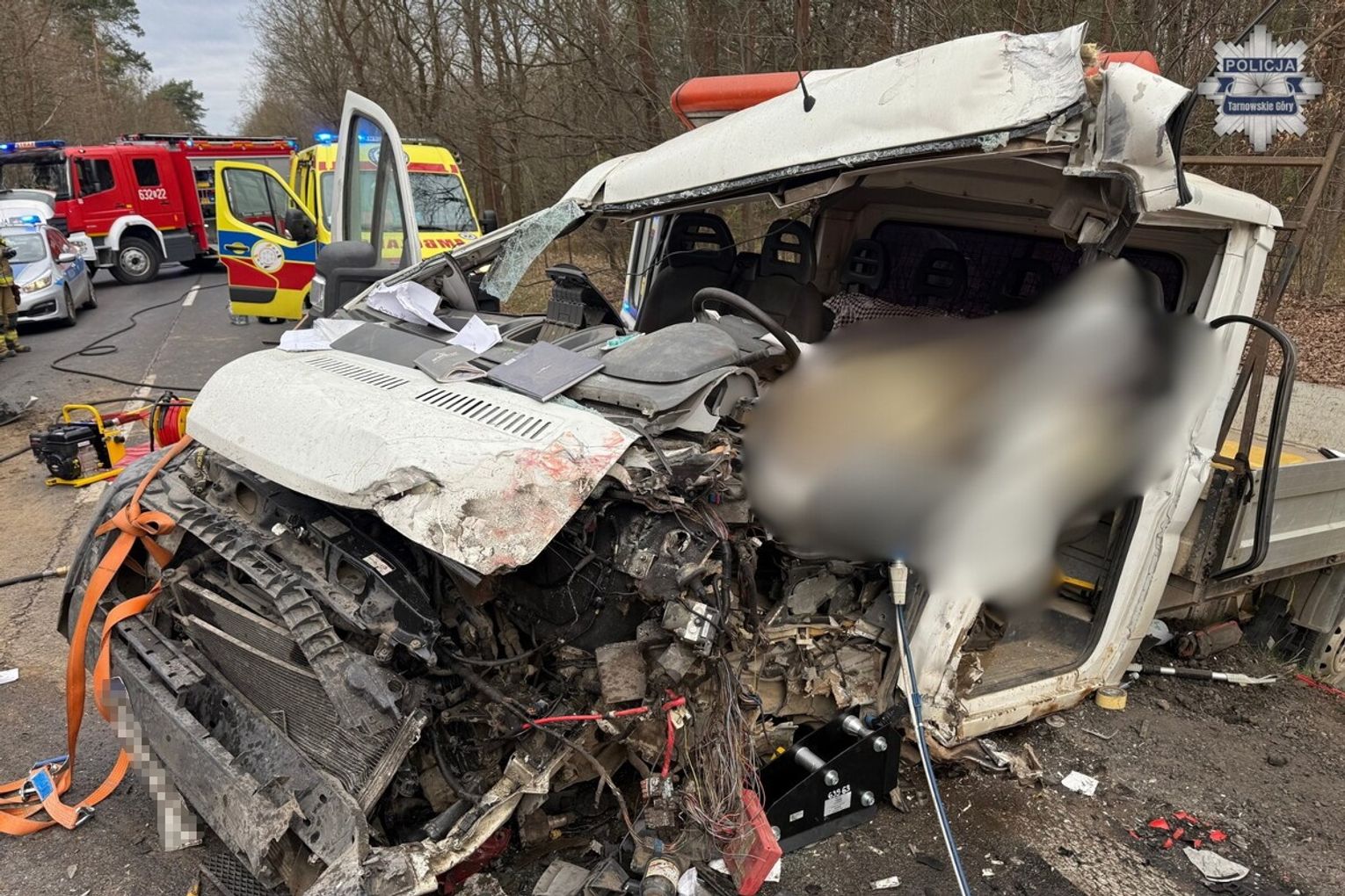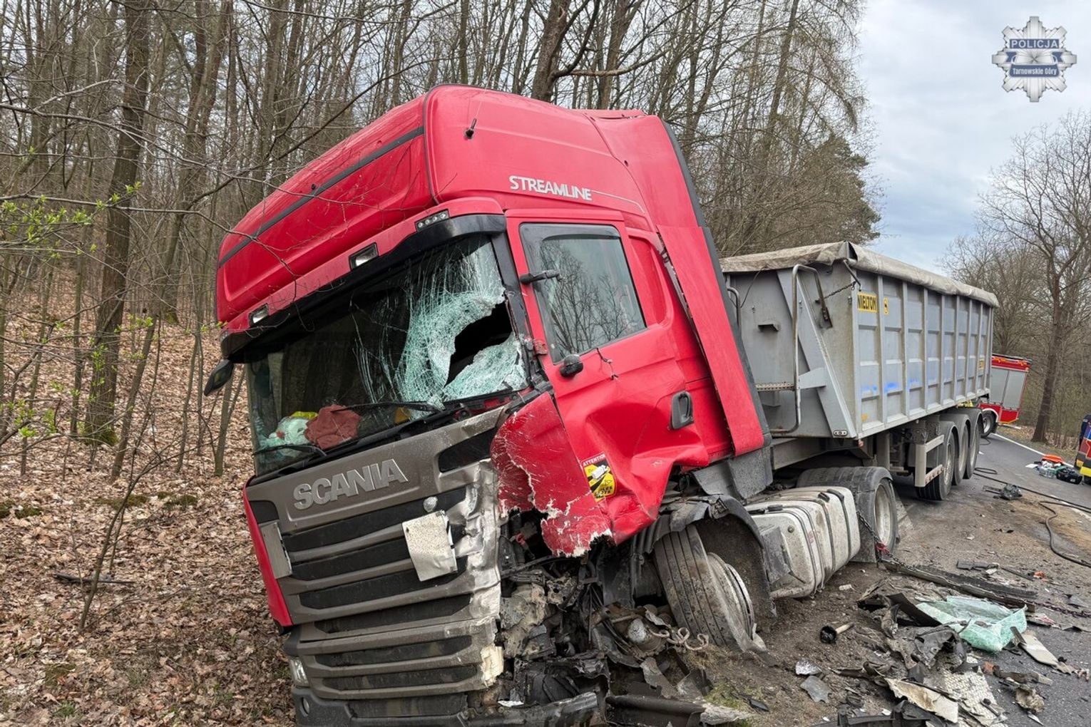 Zgłoszenie o wypadku na drodze krajowej nr 78 wpłynęło do tarnogórskich służb we wtorek, 14 kwietnia, tuż przed godziną 7:00. Na miejsce natychmiast skierowano policję, straż pożarną oraz ratowników medycznych. Z wstępnych ustaleń policjantów wynika, że 61-letni mieszkaniec województwa świętokrzyskiego, który kierował dostawczym citroenem, jechał od strony Niezdary. Z nieustalonych jeszcze przyczyn mężczyzna nagle zjechał na przeciwległy pas ruchu. Tam doszło do potężnego, czołowego zderzenia z nadjeżdżającą z naprzeciwka ciężarową scanią, którą prowadził 55-latek z Olkusza.