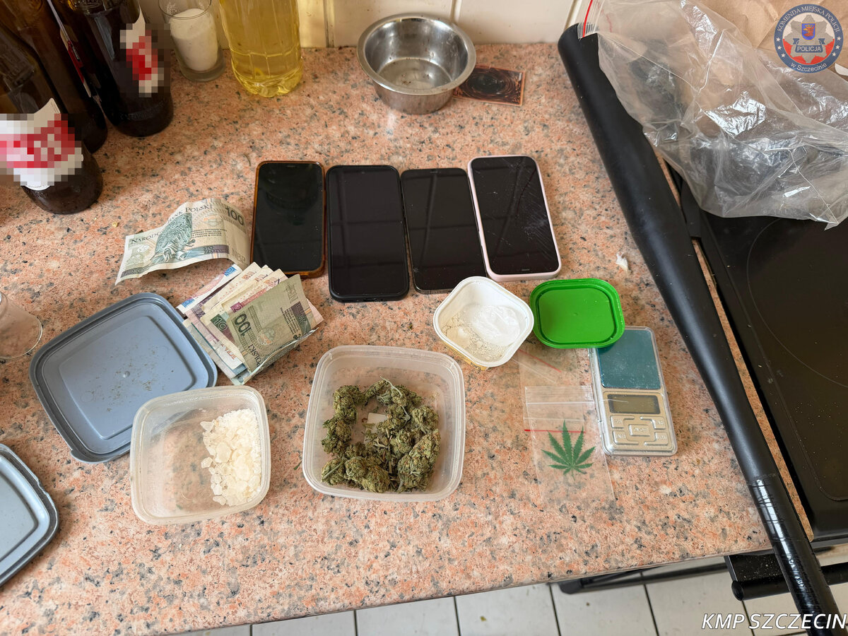 Podczas interwencji funkcjonariusze ujawnili ponad 39 gramów narkotyków, w tym THC, amfetaminę oraz mefedron. Na miejscu zabezpieczono również telefony komórkowe, wagę elektroniczną, gotówkę oraz przedmioty służące do porcjowania środków odurzających.