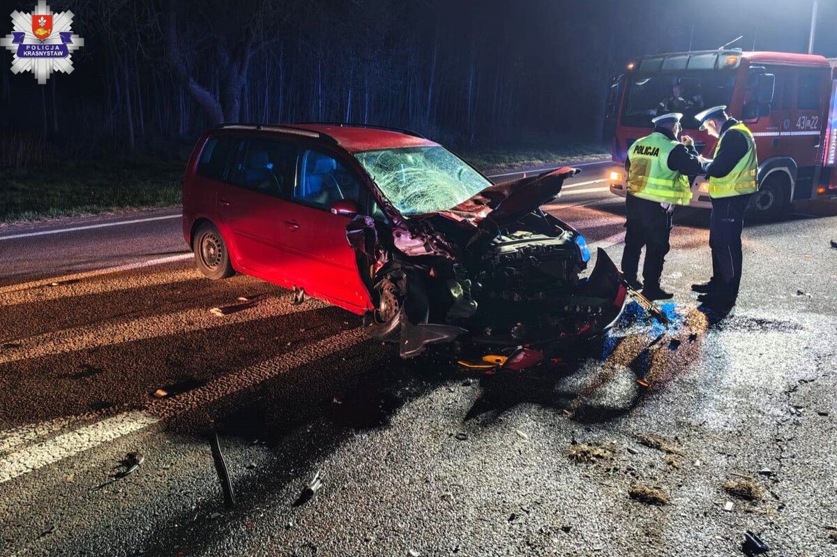 W wyniku zderzenia do szpitala w Krasnymstawie przewieziono 50-letnią kierującą Volkswagenem, 58-letniego kierowcę ciągnika oraz 87-letnią pasażerkę samochodu osobowego. Mimo groźnego przebiegu zdarzenia, najnowsze informacje są optymistyczne, a kobiety nie odniosły poważnych obrażeń zagrażających życiu. Policjanci sprawdzili stan trzeźwości uczestników wypadku. Oboje kierujący byli trzeźwi. Obecnie funkcjonariusze wyjaśniają szczegółowe okoliczności i przyczyny tego zdarzenia. Droga w miejscu wypadku była przez pewien czas zablokowana.