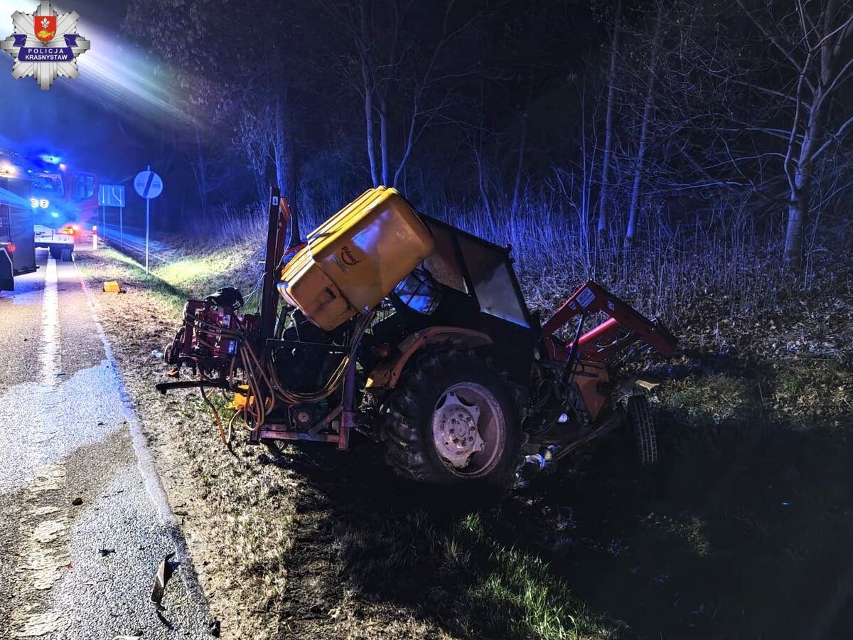 Zdarzenie miało miejsce około godziny 20:10. Na prostym odcinku drogi krajowej rozegrały się sceny, które mogły skończyć się tragicznie. Ze wstępnych ustaleń policjantów z Krasnegostawu wynika, że 50-letnia mieszkanka gminy Szczebrzeszyn, kierująca Volkswagenem, najechała na tył poruszającego się w tym samym kierunku ciągnika rolniczego marki Ursus C-360. Maszyna rolnicza miała podpięty opryskiwacz. Siła uderzenia była na tyle duża, że na miejsce natychmiast wezwano służby ratunkowe.