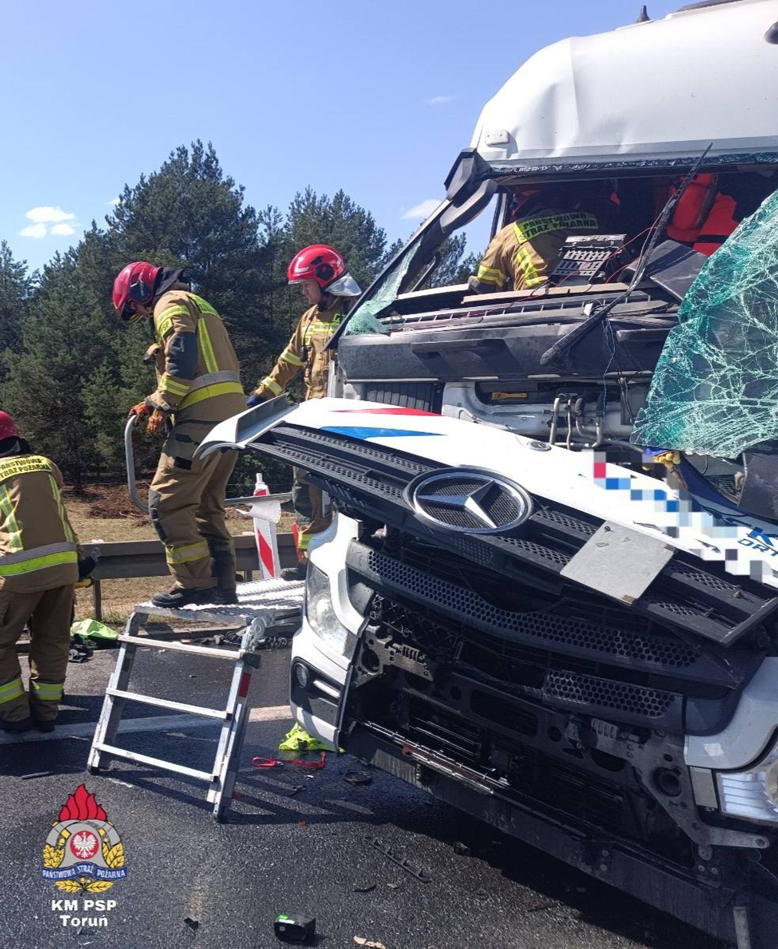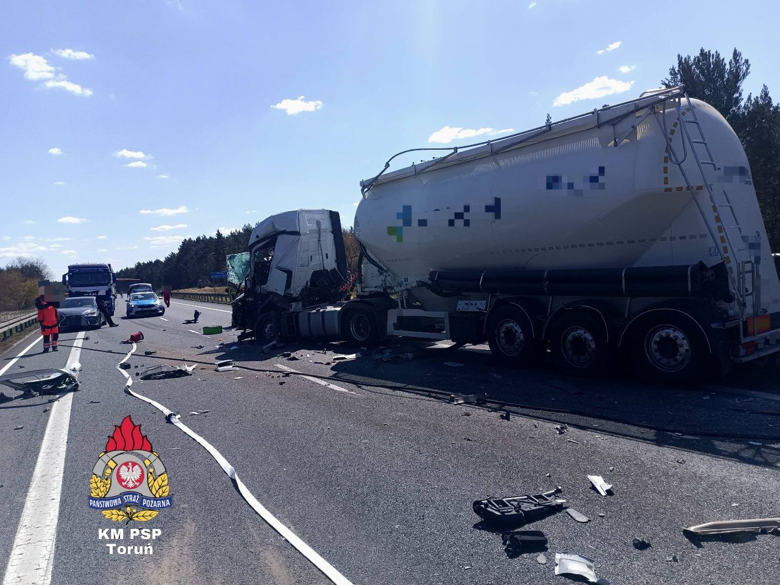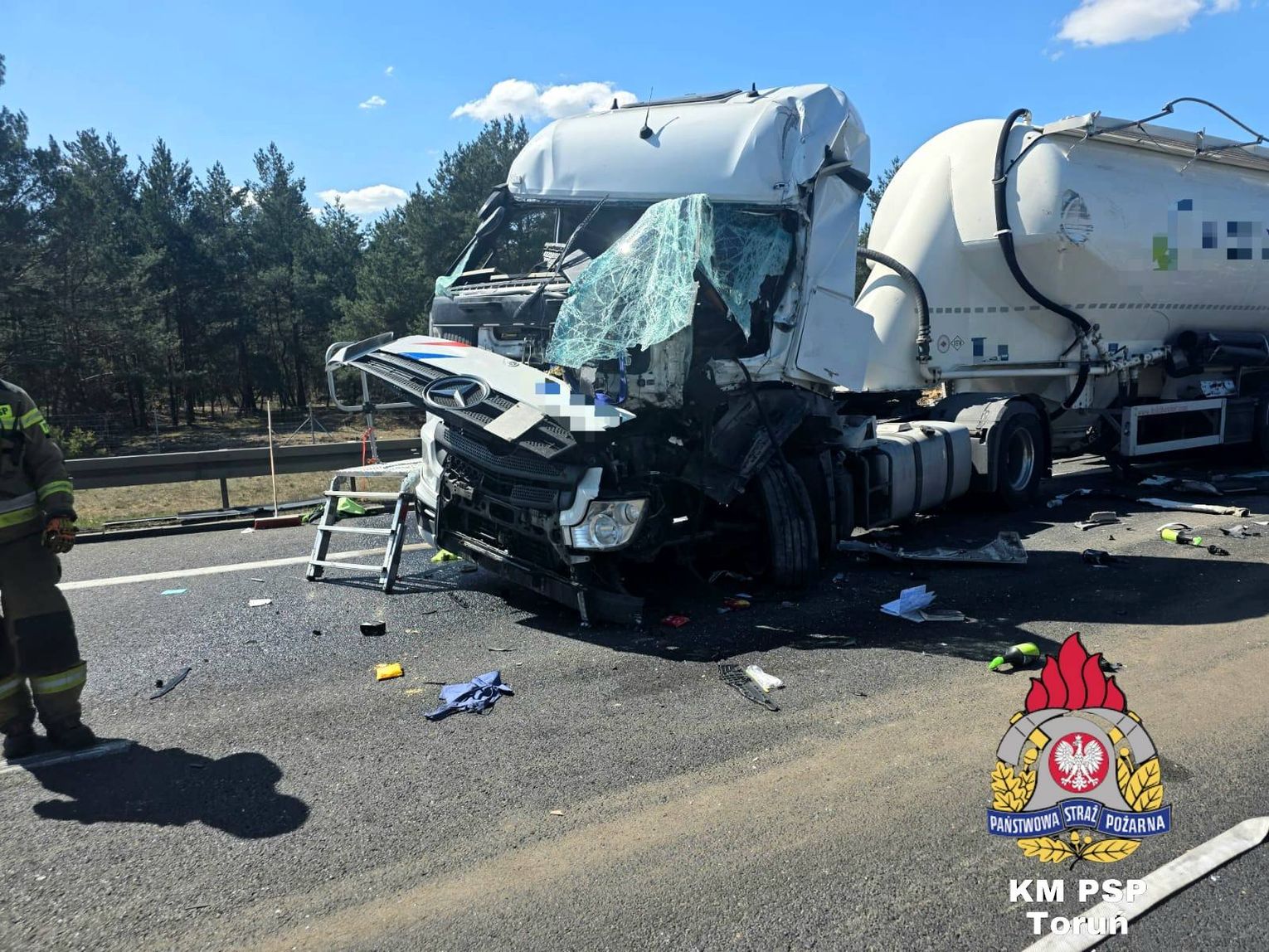 Do wypadku doszło przed godziną 12:00 na 7. kilometrze trasy S10 w powiecie toruńskim. Służby ratunkowe otrzymały zgłoszenie o zderzeniu gigantów, które natychmiast sparaliżowało ruch w tym regionie. Choć pierwsze informacje mówiły o dwóch autach, straż pożarna potwierdziła, że w zdarzeniu brały udział trzy samochody ciężarowe. Scenariusz wypadku był nietypowy ze względu na przewożone towary. Zderzyły się ze sobą m.in. ciężarówka transportująca żywy drób (kurczaki) i cysterna wypełniona popiołem. Siła uderzenia była na tyle duża, że dwie osoby odniosły obrażenia i wymagały pomocy medycznej.