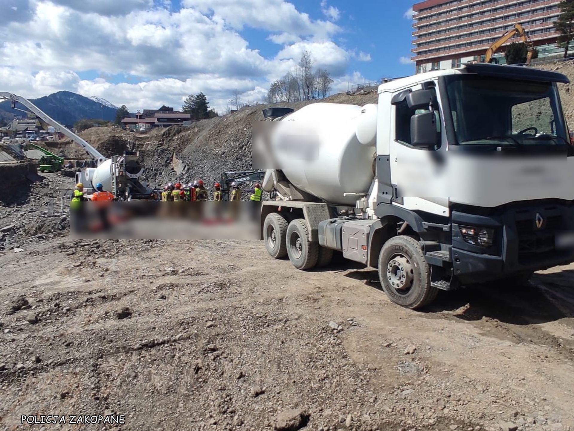 Do ratowania mężczyzny natychmiast ruszyli policjanci, strażacy oraz ratownicy medyczni. Poszkodowany doznał bardzo licznych i poważnych obrażeń ciała. Ze względu na stan krytyczny poszkodowanego i realne zagrożenie życia, na miejsce zadysponowano śmigłowiec LPR, który ma przetransportować mężczyznę do specjalistycznego szpitala. Policjanci sprawdzili trzeźwość operatora betoniarki – mężczyzna był trzeźwy.