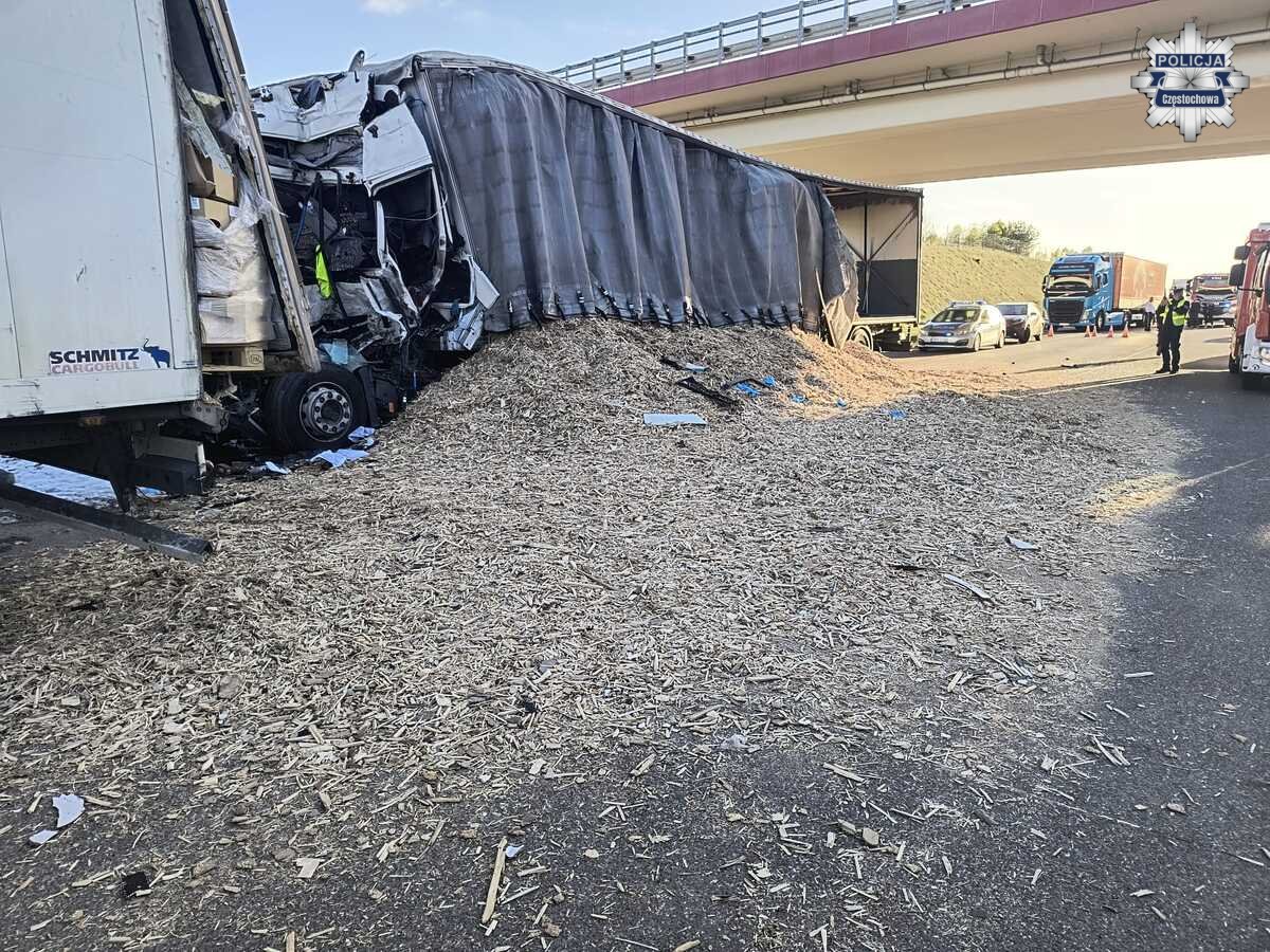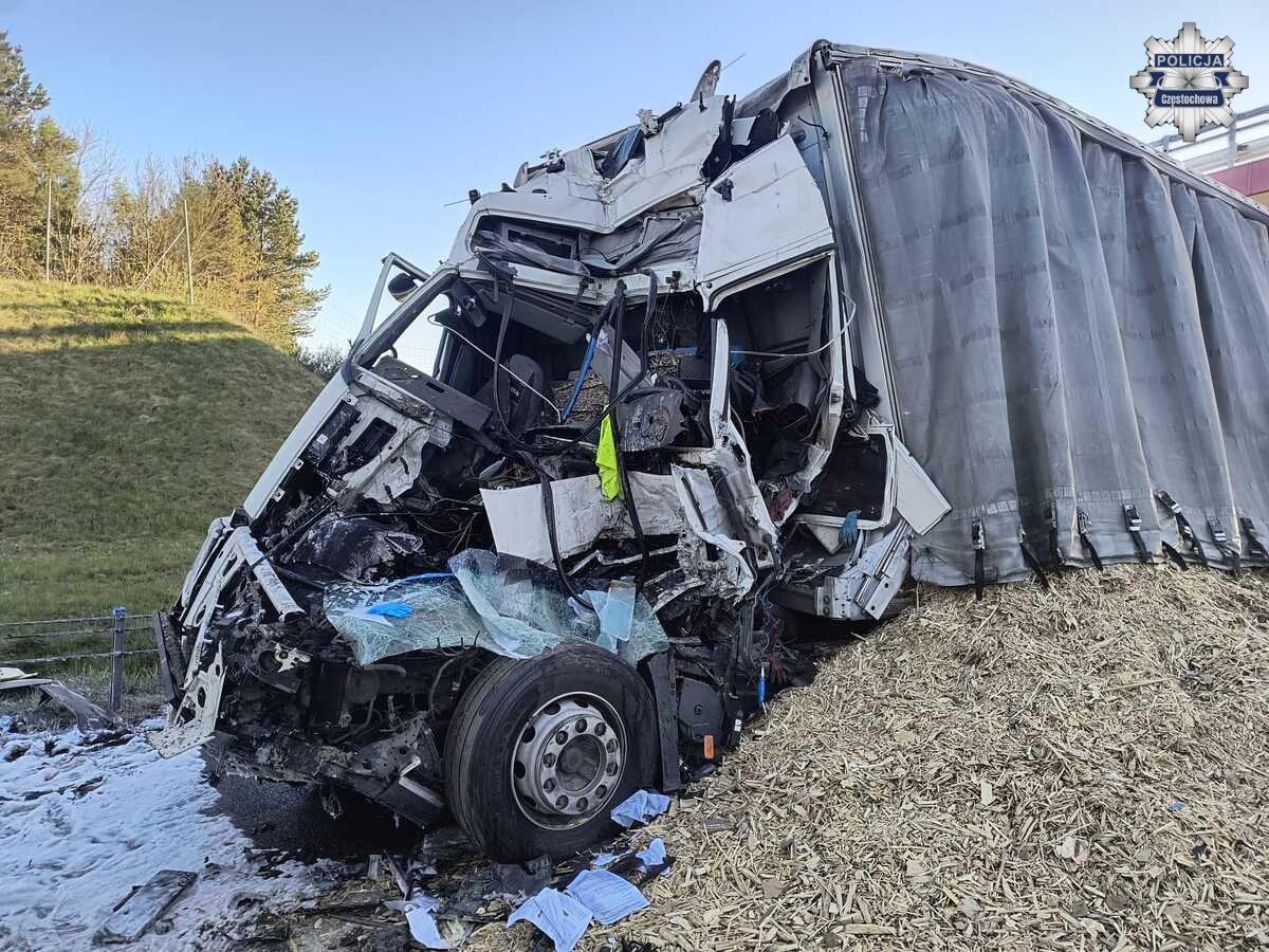 Do wypadku doszło we wtorek, 28 kwietnia, tuż przed godziną 17:00 w miejscowości Wola Kiedrzyńska (powiat częstochowski). W zdarzeniu, które przypominało reakcję łańcuchową, brały udział trzy zestawy ciężarowe oraz samochód osobowy. Ze wstępnych ustaleń policjantów wynika, że 49-letni kierowca Volvo z naczepą najprawdopodobniej nie dostosował prędkości do warunków panujących na drodze. Mężczyzna z ogromną siłą uderzył w tył poprzedzającej go Scanii.